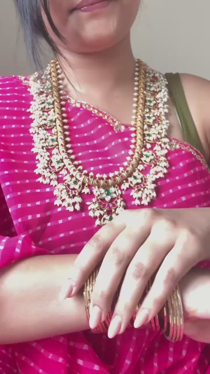 Avoid perfumes and cosmetics: Apply makeup, hairspray, or perfume before putting on Kundan jewelry, and ensure that the skin is dry. Perfumes can corrode the delicate metal foil and dull the gemstones.